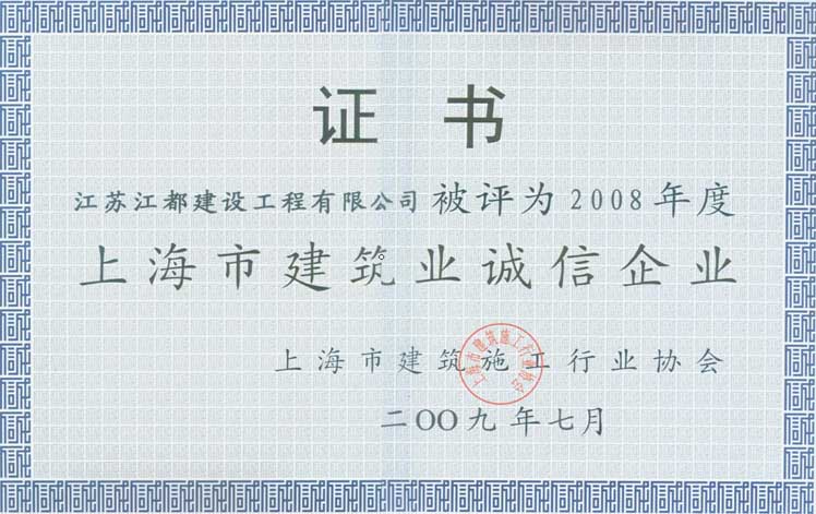 2008年度上海市建筑業誠信企業