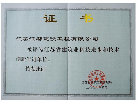 江蘇省建筑業科技進步和技術創新先進單位