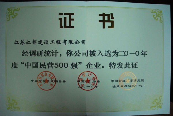 二0一0年度“中國民營500強(qiáng)”企業(yè)