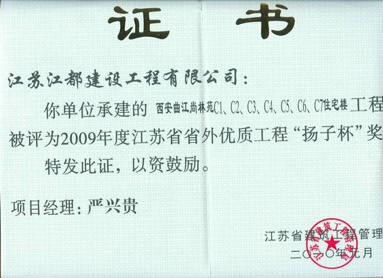 工程獲獎(jiǎng)證書