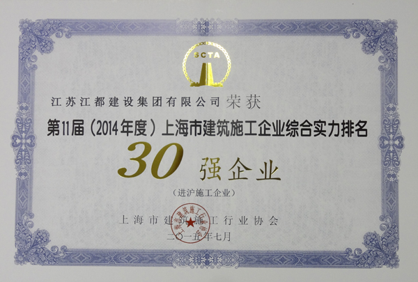 上海市建筑施工企業綜合實力30強企業